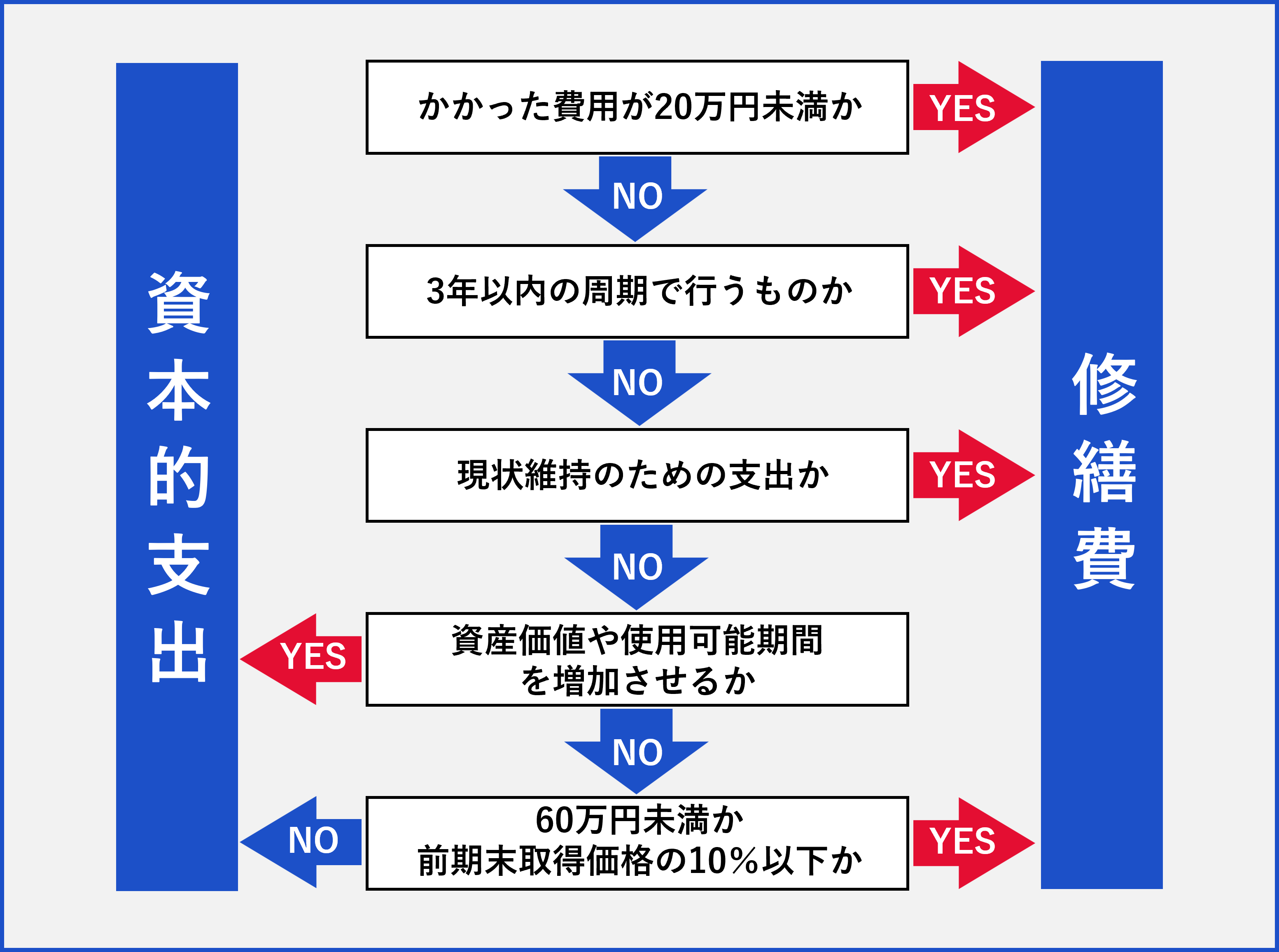 資本的支出か修繕費かを判断するフローチャート