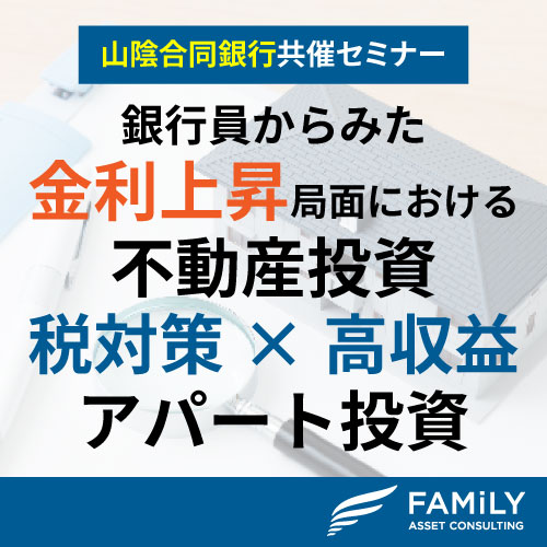 【渋谷開催】~山陰合同銀行~銀行員からみた金利上昇局面における不動産投資と税対策×高収益アパート投資セミナー
